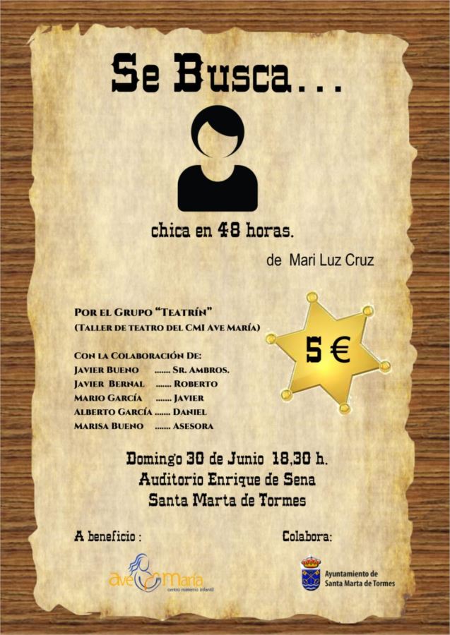 «Se busca chica en 48 horas» Mª Luz Cruz – Grupo Teatrín – Santa Marta de Tormes julio 15, 2019 de mariluzdramaturga Deja un comentario ← Imagen anterior Imagen siguiente → Me gusta Cargando...